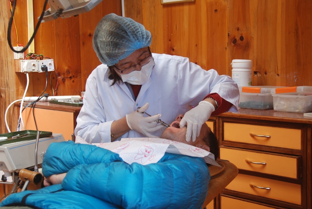 The Namche Dental Clinic was founded in 1991 with support from the American Himalayan Foundation (USA). The clinic, set up and run by Canadian trained dentist Nawang Doka Sherpa, treats locals and tourists alike. This fulfilled a dream of providing dental care for Sherpas by Sherpas. Since its foundation it has treated more than 35,000 patients.