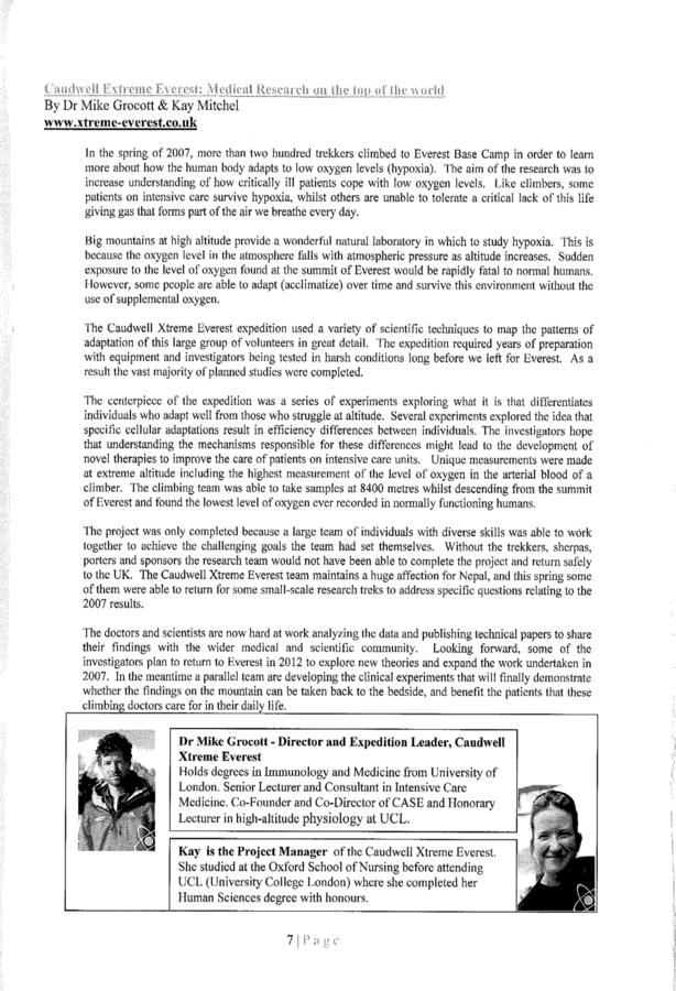 The 2007 Everest Medical Research Expedition booklet