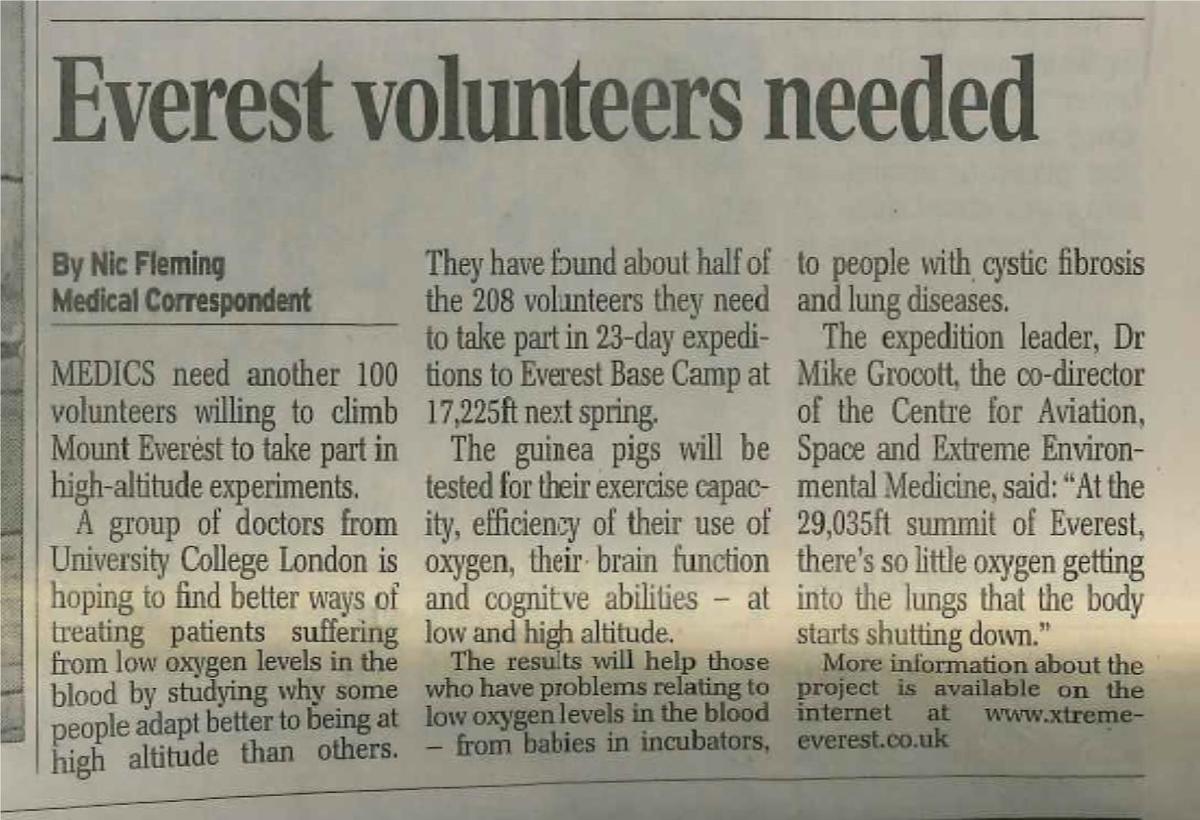Volunteer call for Everest lab