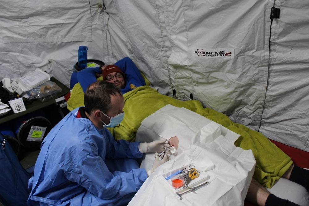 Meanwhile at Everest Base Camp, volunteers and investigators are lining up to partake in the dreaded muscle biopsy. Luckily, laughter and singing and the reassuring words of the doctors and sherpas alike, the team were able to complete their testing.
