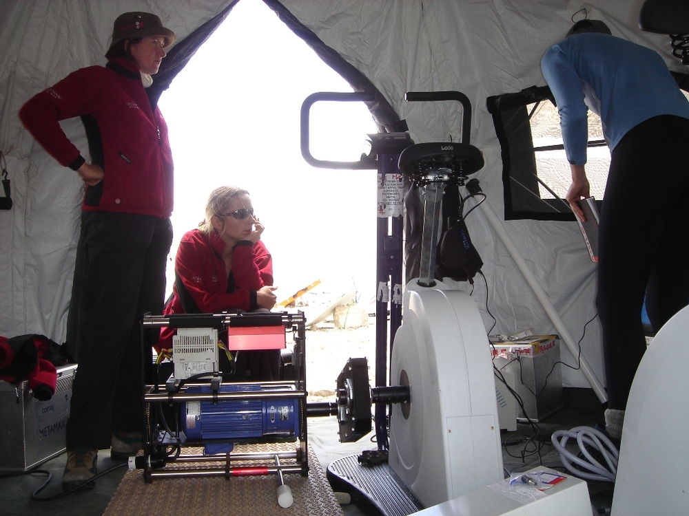 But the big excitement is that the CPX (cardiopulmonary exercise test) equipment is up, calibrated, powered and works! This speaks highly of Dan, Denny, Kay and Helen, and also of the Lode and Cortex kit. Indeed, Cortex have spent months working with the team testing in cold/high altitude chambers to make it all work. Patrick and Hugh thus become the first two people to have a breath-by-breath CPX test at this altitude, and the data look fantastically interesting already!